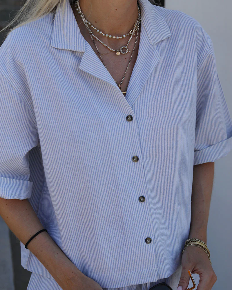 Pair with the matching shorts, or blend with a white t-shirt and our Blue Austin jumper. These sets are our go to for the summer and can be worn paired or unpaired... we particularly like this shirt with high waisted denims!