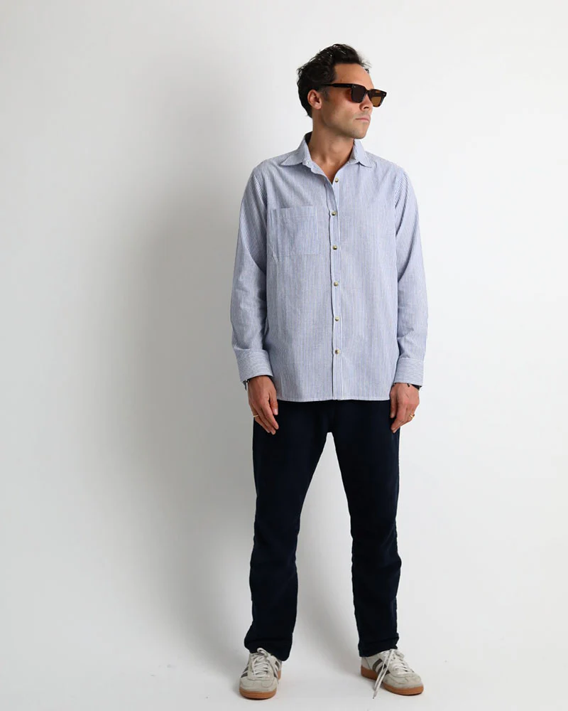 Every wardrobe needs an oxford shirt! The super-light cotton shirt wears like a classic linen shirt, but creases less! We like to pair with swim shorts or chinos, depending on whether its for work or weekend!